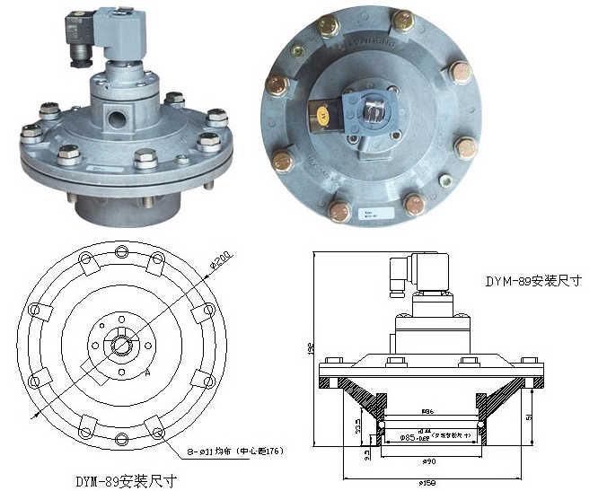 DYM-89為淹沒式閥(亦稱嵌入式閥),它直接安裝在氣包上,具有很好的直通噴吹,工作氣源損失較小,適用于氣源壓力范圍較寬之場合。